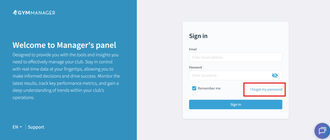Step 1. In the Manager’s Panel login window, click "I forgot my password".