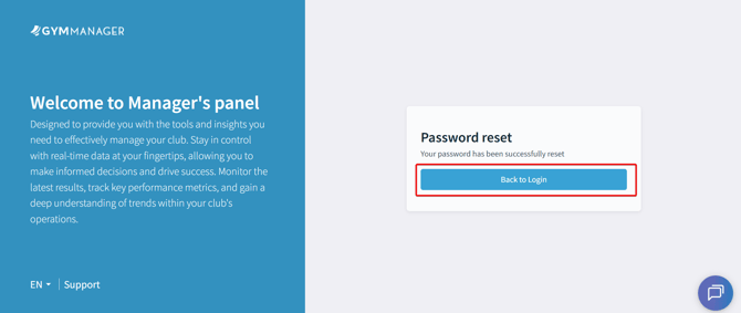 In the Password reset window, click “Back to login”