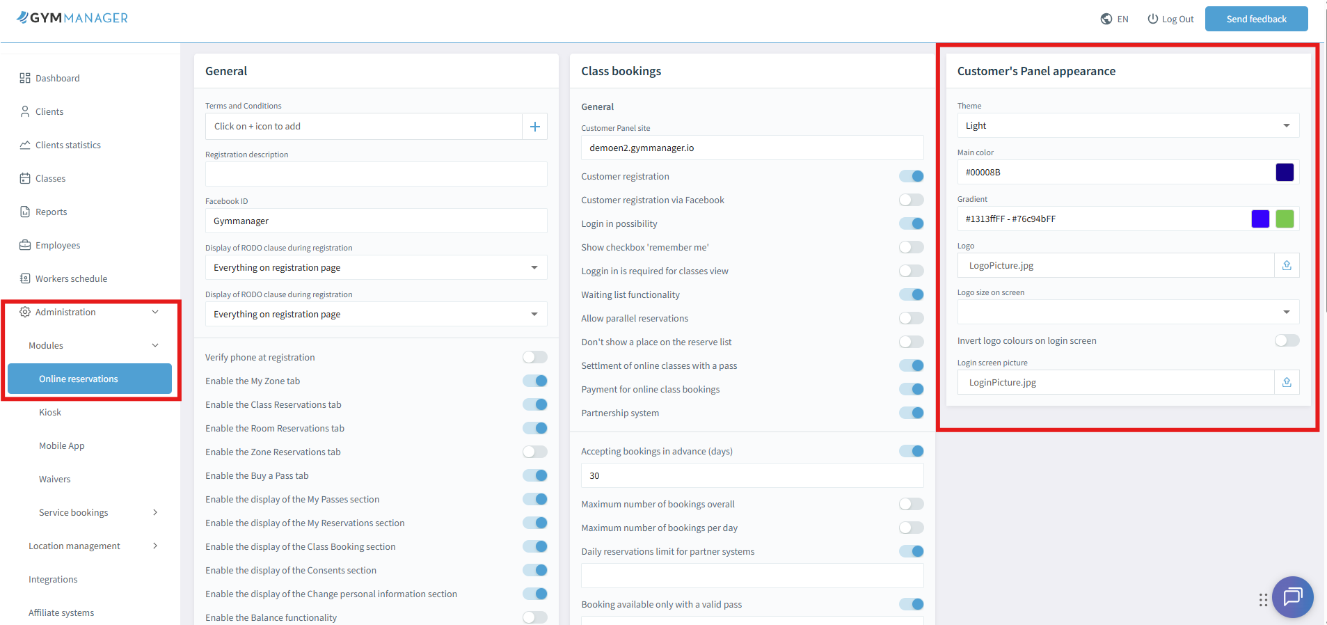 To configure colors and the logo in the Client Panel, you need to log in to the Manager Panel.